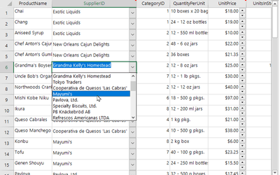 You can bind the Spread component to an external data set, such as data in a database. You can easily customize how data is bound and include features like hierarchical display. Data can be bound to entire sheets, columns, cell ranges, or combo boxes. Binding the data can be done in either the Properties window of the Spread Designer or using code.