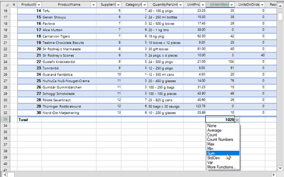 In Spread, you can add formulas to a table in a total row at the bottom of the table with the Formula Editor or with code. This can be done at run-time but adding a total row to a table and then selecting the drop-down arrow at the bottom right corner to display the formulas available. This can also be done by using the Formula property. You can also change the visibility of the Total row using the TotalRowVisible property. Additionally, you can automatically fill a column with the entered formula in the table by using the AutoCreateCalculatedColumns property.