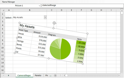 Camera shapes allow you to create a snapshot of a range of cells and use that as a shape in the Spread control.