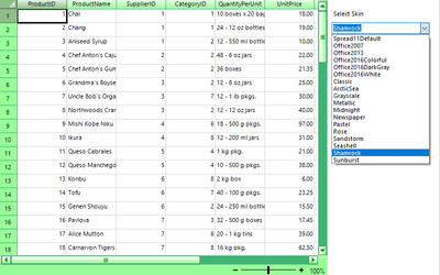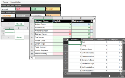 Customize the look and feel of your .NET spreadsheet with built-in or custom skins, easily applied via code using C# or VB, or the Spread Designer.