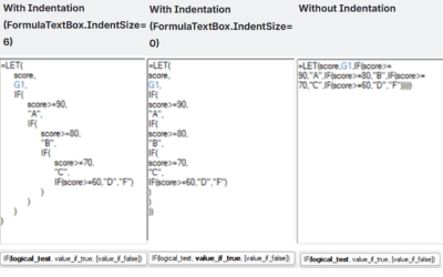 The Formula Auto-Indent feature improves formula readability by automatically breaking long expressions into multiple lines and applying structured indentation based on the underlying expression tree. Developers can enable this behavior with FormulaTextBox.AutoIndent, control indentation depth via IndentSize, and define when wrapping occurs using FormatWidthLimit. When enabled, nested expressions, LET functions, and multi-level conditions become significantly easier to navigate, providing a clearer editing experience for both developers and end users.
