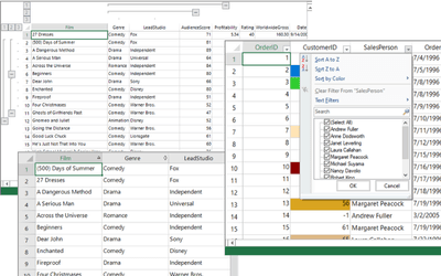 You can customize row and column interaction including sorting, filtering, and grouping rows. Row and column outlines can be customized, expanding or collapsing rows and columns and changing the appearance. Searching can also be customized, allowing a user to perform standard or advanced searches, and searching data with code. You can also control what a user is allowed to interact with, as well as the size and style of rows/columns when inserting.