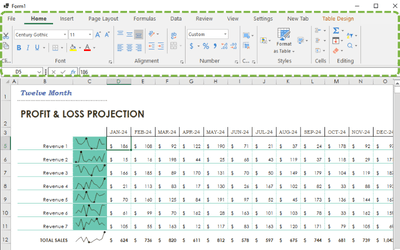 Add a .NET familiar Ribbon Toolbar to your WinForms app for enhanced navigation, command execution, and UI customization in Spread.NET.