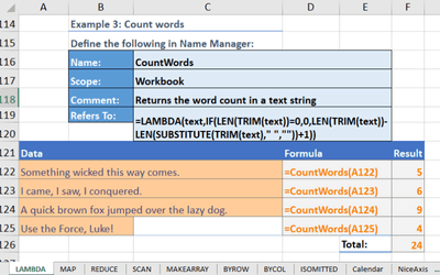 In Spread, LAMBDA functions can be used to create custom, reusable functions and call them by a desired name. You can create functions for commonly used formulas and effectively add your own functions. There are also various helper functions, such as BYROW, which applies a LAMBDA to each row and returns an array of the results, BYCOL, which applied a LAMBDA to each column and returns an array of the results, ISOMITTED, which checks whether the value in a LAMBDA is missing, MAKEARRAY, which returns a calculated array of a specified row and column size, MAP which returns an array formed by mapping each value in an array, REDUCE which reduces an array to an accumulated value, and SCAN, which scans an array.