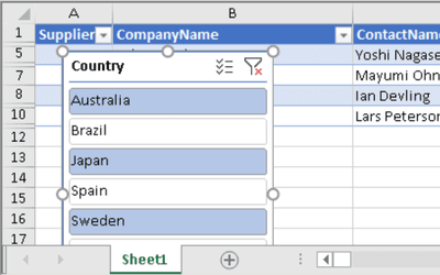 Spread supports using slicers, which are visual filters that enable users to perform quick filtration of data in tables without using drop-down lists.