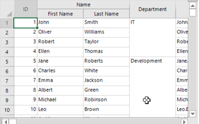 The Merge & Span Cells feature in Spread for WinForms allows users to combine multiple adjacent cells into a single larger cell. Unlike auto-merging, which dynamically groups identical values, spanning is a manual process that creates a visually unified cell while retaining individual cell data. When a span is applied, the content of the anchor cell—the first cell in the span—takes precedence and occupies the entire merged area, while the data in other spanned cells is hidden but not deleted. Spanning can be applied to both data and header areas using the AddSpanCell method or via the Spread Designer UI. Spans can also be removed at any time using the RemoveSpanCell method, restoring individual cell content. However, spans may be affected by sorting operations, so they should be applied with consideration to the spreadsheet’s structure.