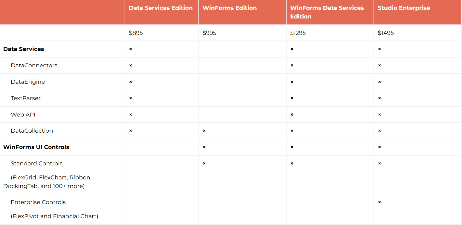 ComponentOne WinForms Data Services Edition provides over 130 WinForms UI controls and vital data layering components for connecting, querying, and analyzing.